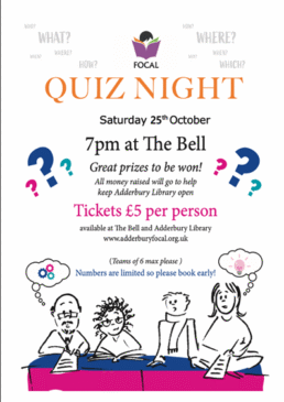 💷 Tickets: Only £5 per person! Grab yours now at The Bell or Adderbury Library. 🍽️ Feeling peckish? The Bell will kindly donate to the library for every meal served to hungry quizzers. ❤️